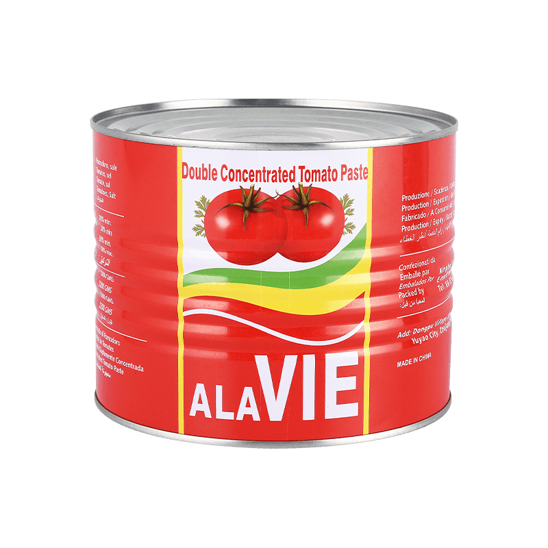 2200g ekstra büyük kapasitesi 2200g konserve (kolay açık/ sert açık) domates macunu Evde günlük pişirme ihtiyaçlarını karşılamak için veya restoranlarda büyük ölçekli kullanım için tasarlanmıştır. Bu büyük kapasiteli tasarım sadece sık satın alma ve depolama sorununu azaltmakla kalmaz, aynı zamanda uzun vadeli kullanım için kolaylık ve ekonomi de sağlar. Şirketin güçlü teknik gücü ve gelişmiş üretim ekipmanlarına dayanarak, ileri üretim teknolojisini benimsiyoruz ve yüksek kaliteli domatesleri dikkatlice seçerek, ince işleme ve katı kalite kontrolü geçirerek domateslerin doğal besinlerini, özellikle yüksek likopen içeriğini koruyoruz. Bu işlem, domates sosunun saf bir tada, parlak renge ve zengin beslenme değerine sahip olmasını sağlar.